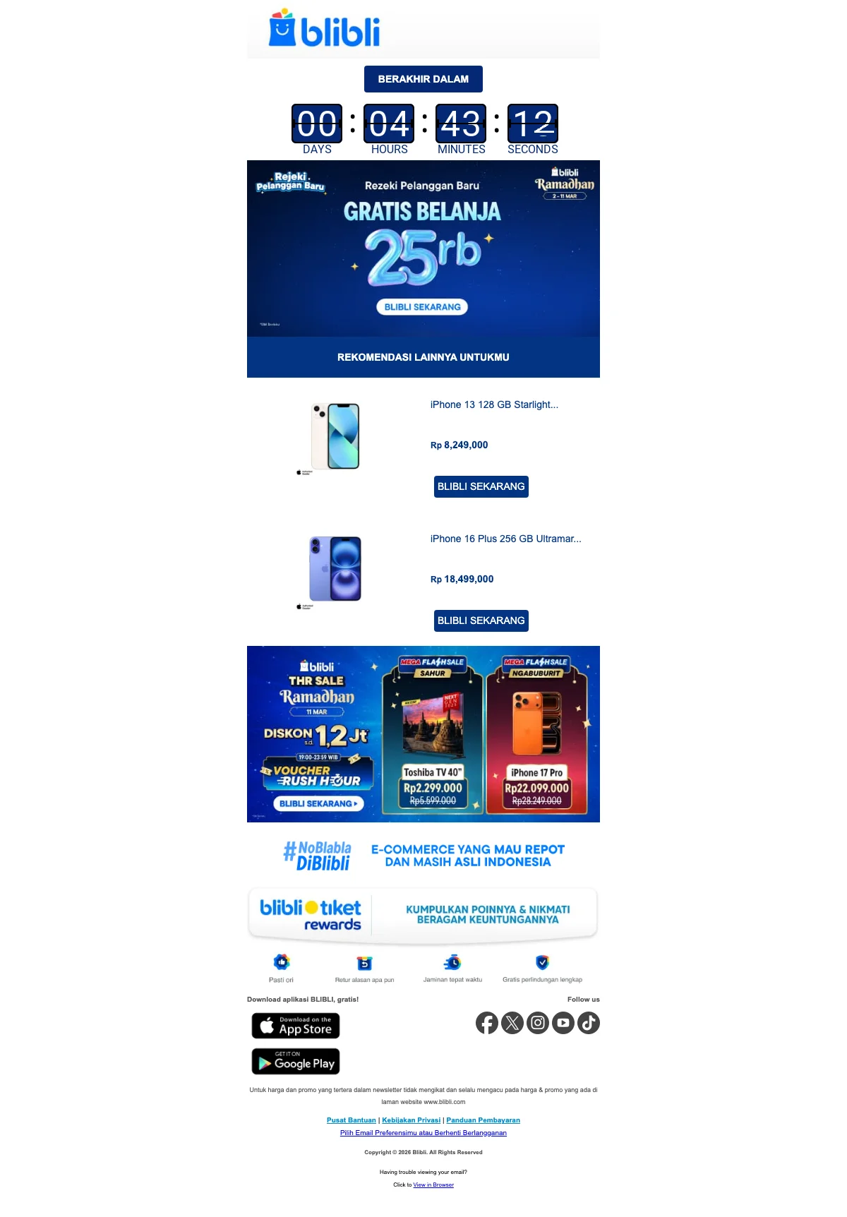 Nah masih mau pindah ke lain hati? Dimana lagi Anda bisa mendapatkan semua kebutuhan tanpa harus membayar mahal, kalau bukan di sinia. Selain itu, bagi Anda yang ingin mendapatkan voucher promo Blibli Indonesia secara eksklusif, Anda cukup mendaftarkan alamat email Anda untuk berlangganan Buletin Saleduck secara gratis dan setiap harinya Anda akan menerima segala informasi dan promo terbaru. So guys, pastikan di hape kamu ada aplikasi nya ya!