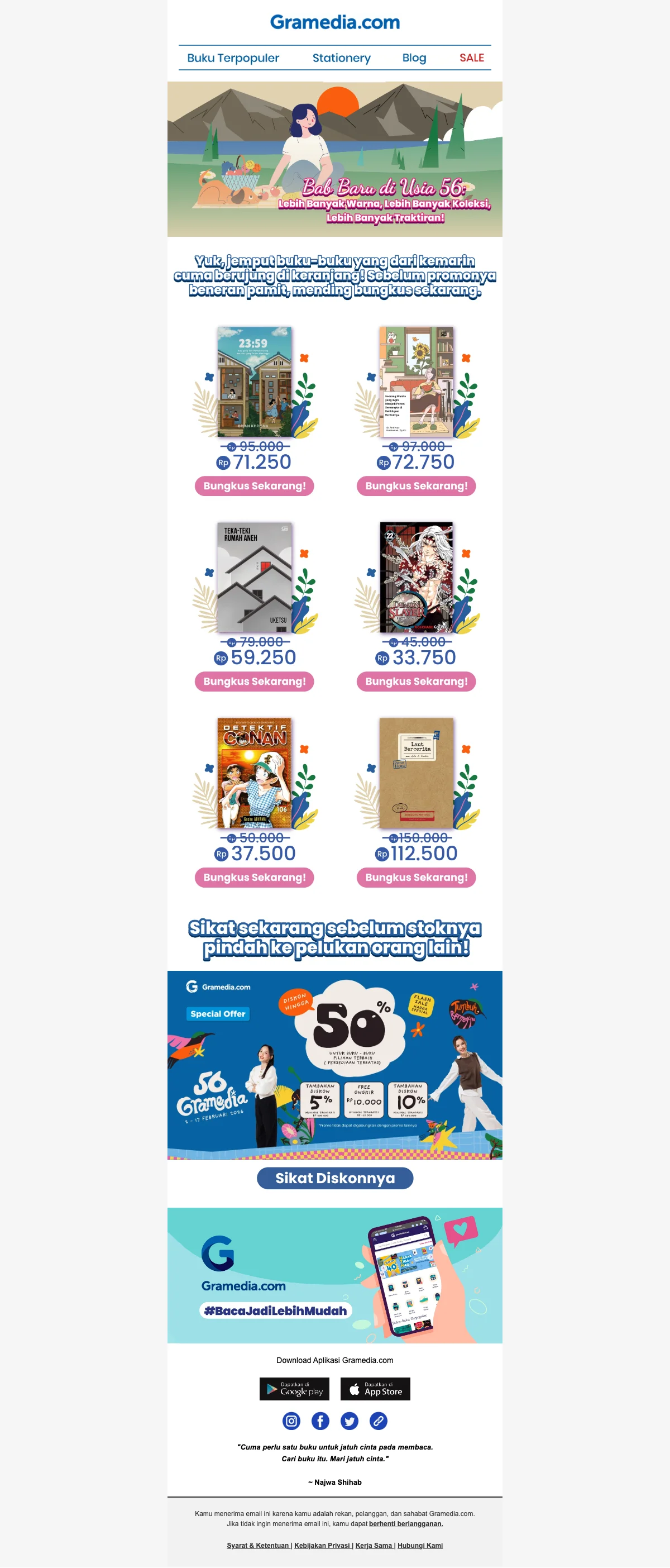 PESTA PECAH! Diskon s/d 50% di 56th Gramedia! 🔥