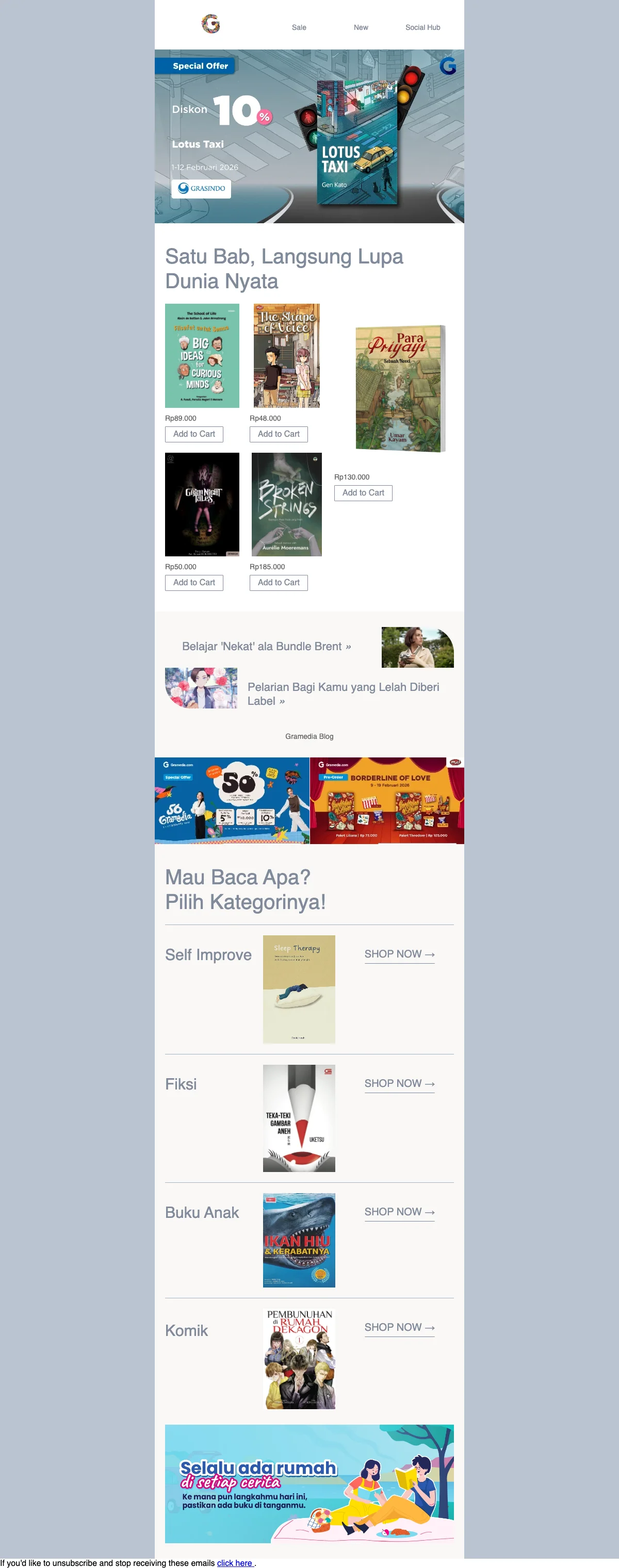 Kami mengecek semua newsletter dari Gramedia untuk Anda demi menemukan promo terbaik. Cek newsletter terbaru mereka sekarang!