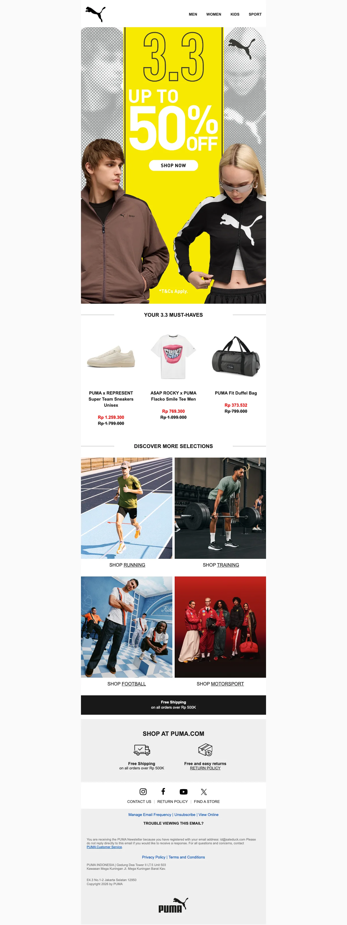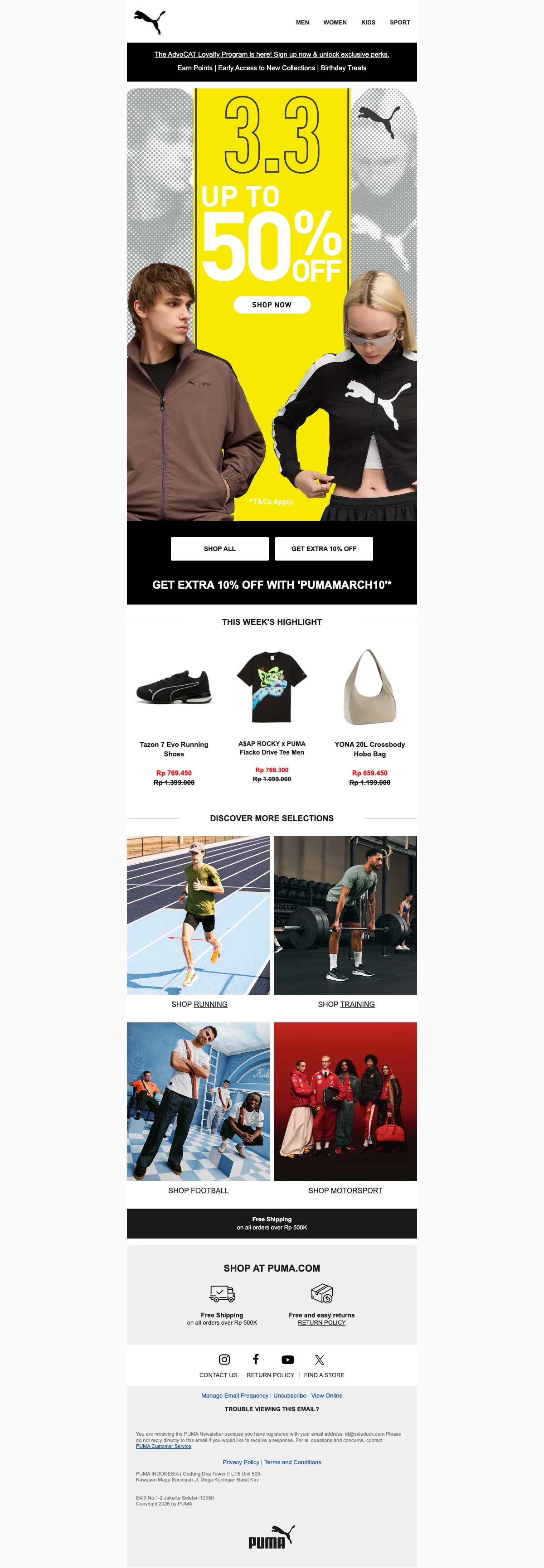 | PUMAMARCH10 | Puma promo diskon hingga 50% dan ekstra 10% pakai kode |