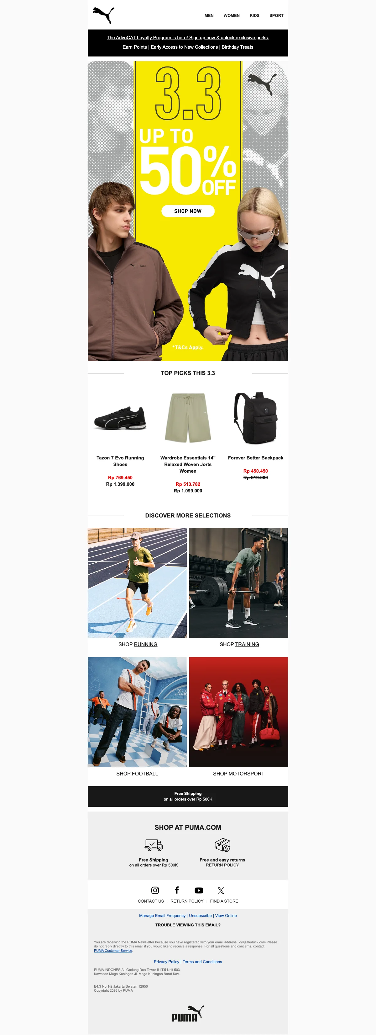 Promo Puma gratis ongkir untuk pengiriman seluruh Indonesia