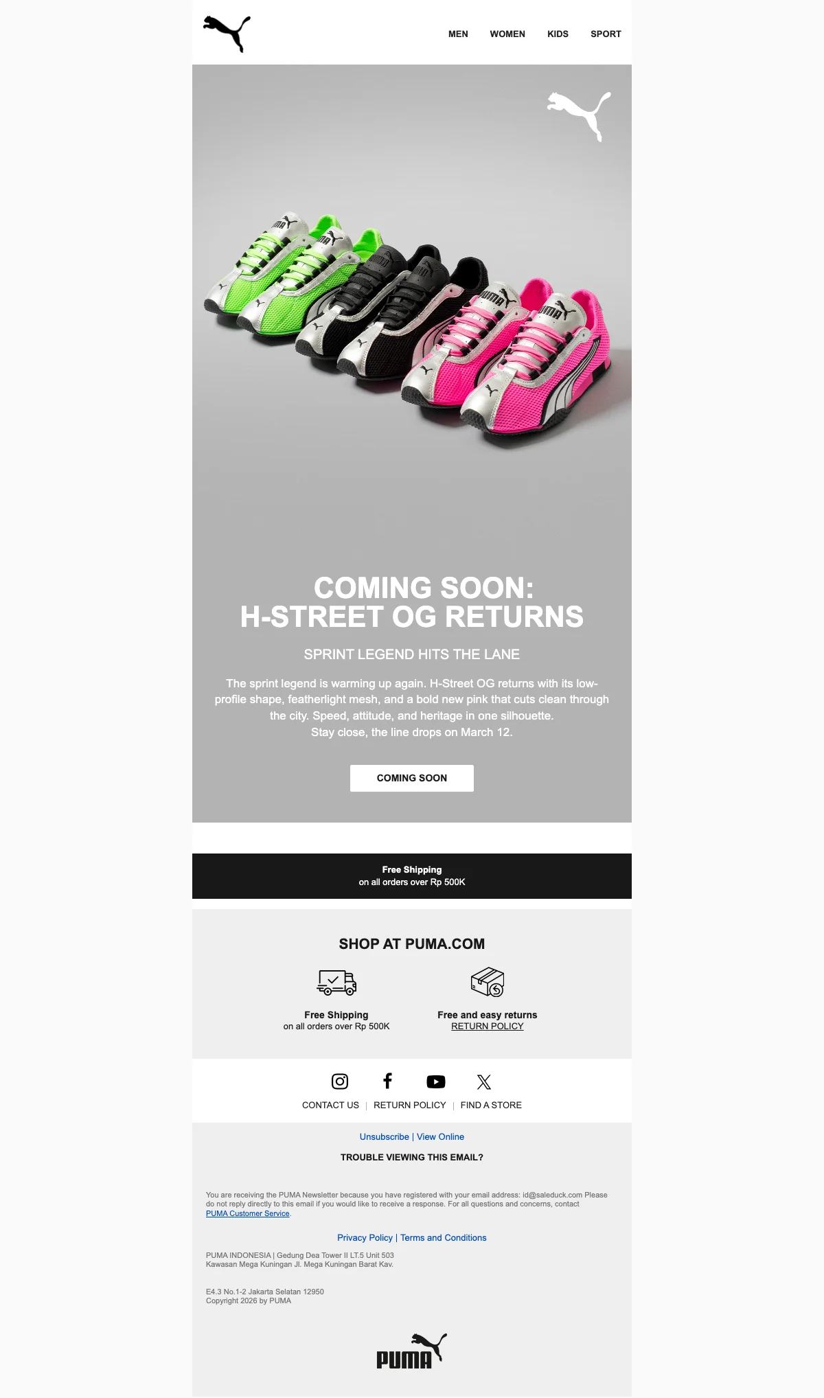 Promo gratis ongkir Puma khusus daerah DKI Jakarta